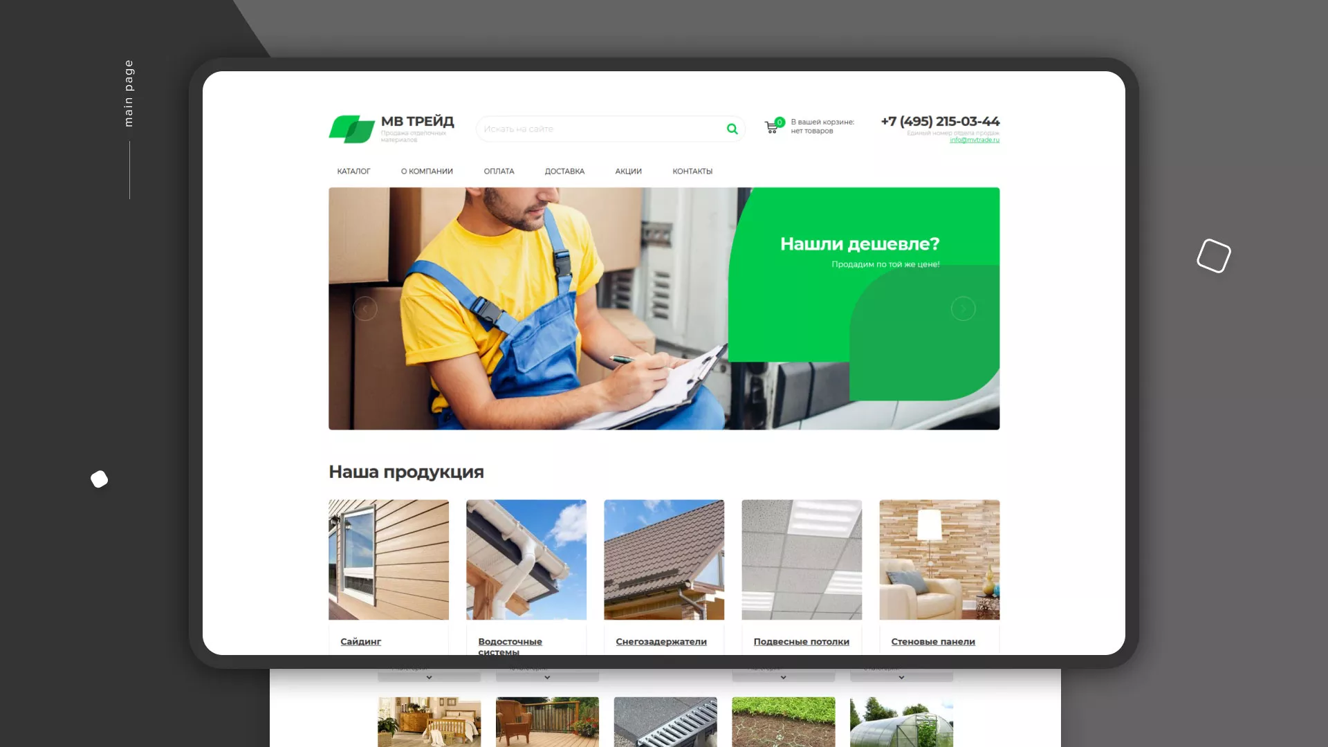 Компания «МВ Трейд» осуществляет продажу сайдинга и отделочных материалов через интернет со своих складов в Новопавловске. За 17 лет компания зарекомендовала себя надежным поставщиком. Товары реализуются как оптом, так и в розницу.